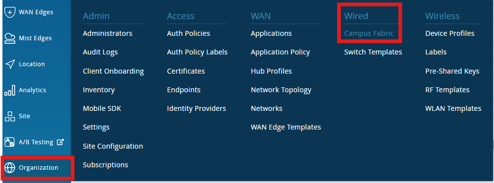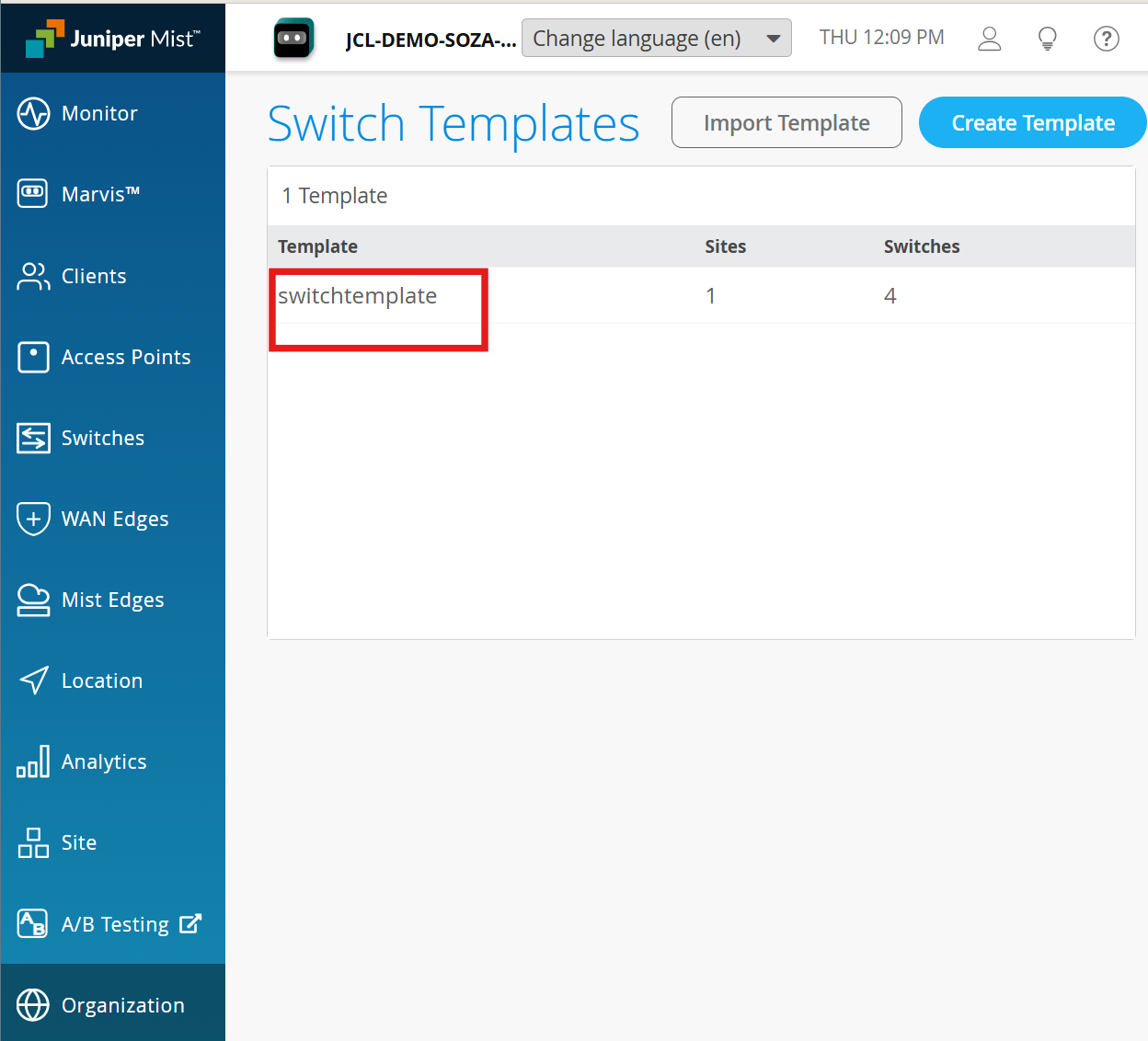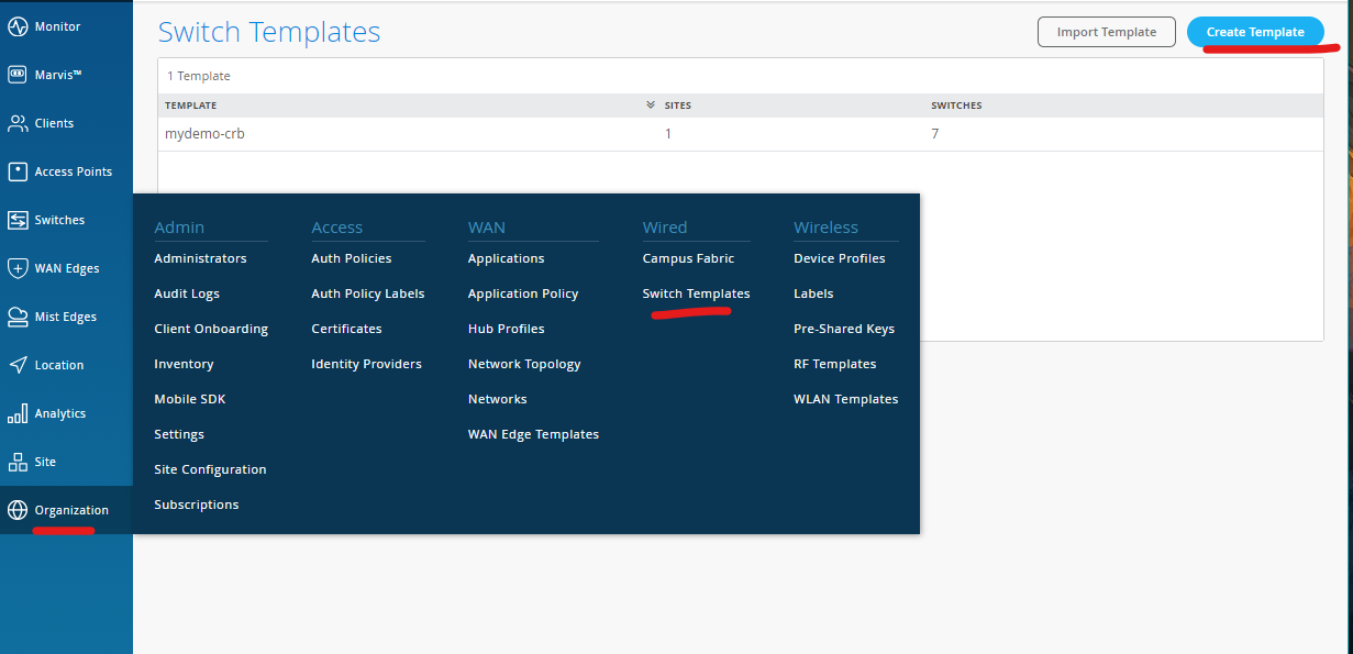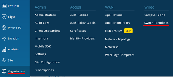 Navigate to Switch Template section Organization > Wired > Switch Templates