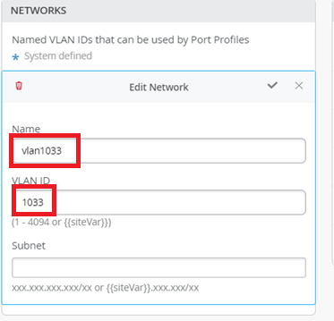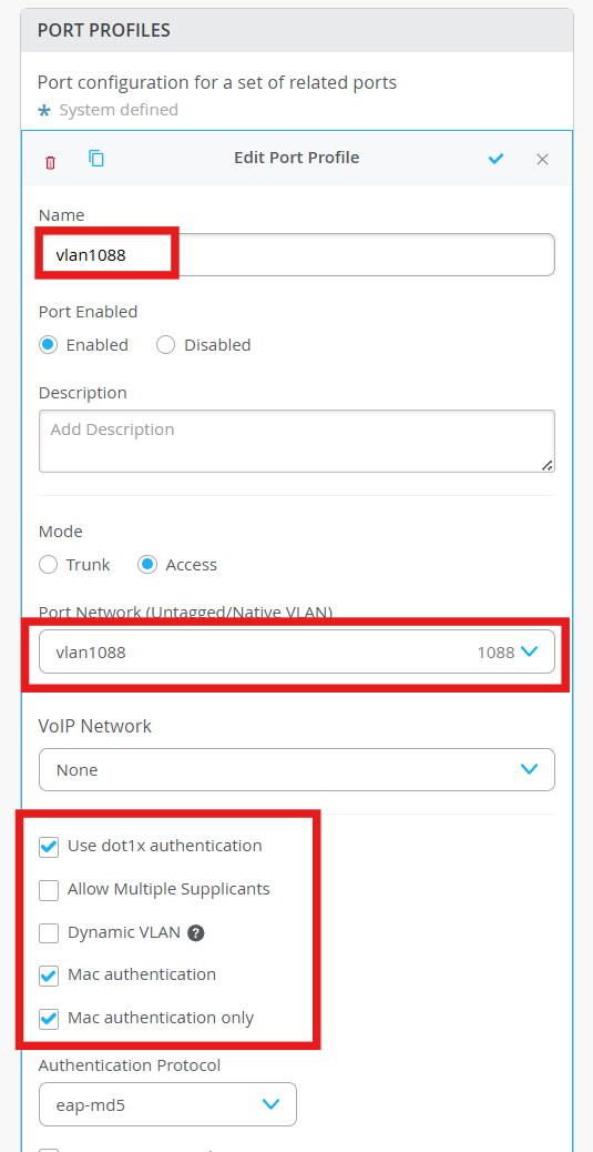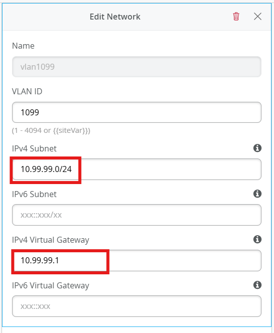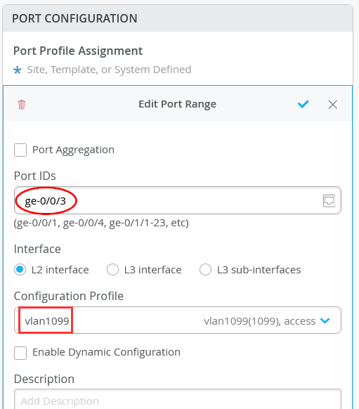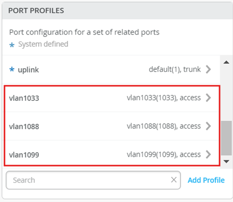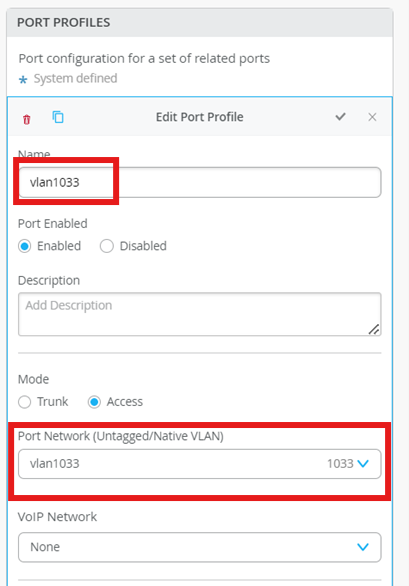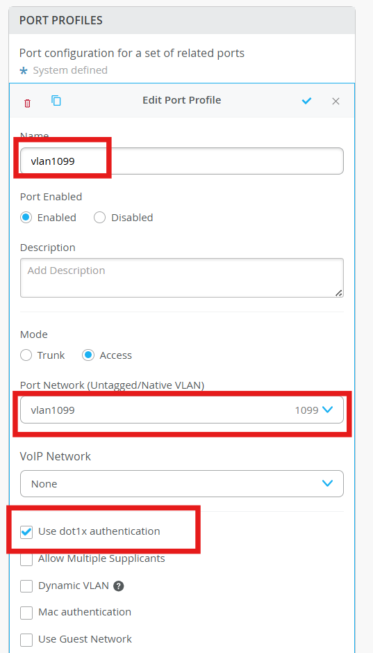 Under Port Profiles, edit the exiting vlan1099 and configure:
