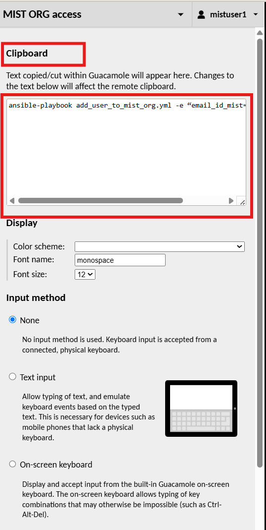 On a Windows device with an external keyboard, the guacamole menu is displayed by pressing Ctrl+Alt+Shift On a Mac device with an external keyboard, the guacamole menu is displayed by pressing Ctrl+Command+Shift
