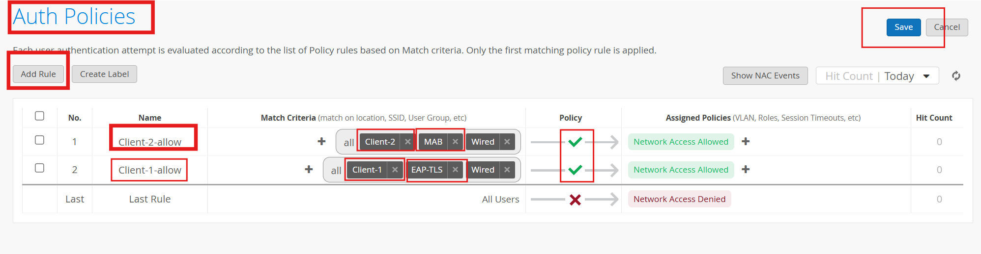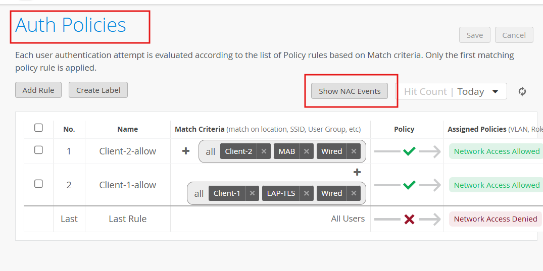 To see all the NAC events, navigate to Auth Policies > Show NAC Events